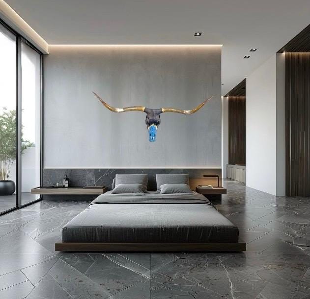 PLEASE NOTE: Our thoughtfully curated home decor backgrounds are designed to help you envision how a longhorn skull will elevate your space, offering inspiration for your walls. To make your decision effortless, we provide detailed videos and precise dimensions so you can see exactly how the piece will fit in your home. At Raise Your Horns, we prioritize quality and elegance, delivering timeless art that's absolutely irresistible! Our loyal customers—our raving fans—love the unique statement pieces we offer, and we’re confident we can help you find the longhorn skull of your dreams. Just check our reviews to see for yourselves. We take time to post detailed measurements just like when we craft your each longhorn skull. We focus on lifting you up with unmatched craftsmanship and style.