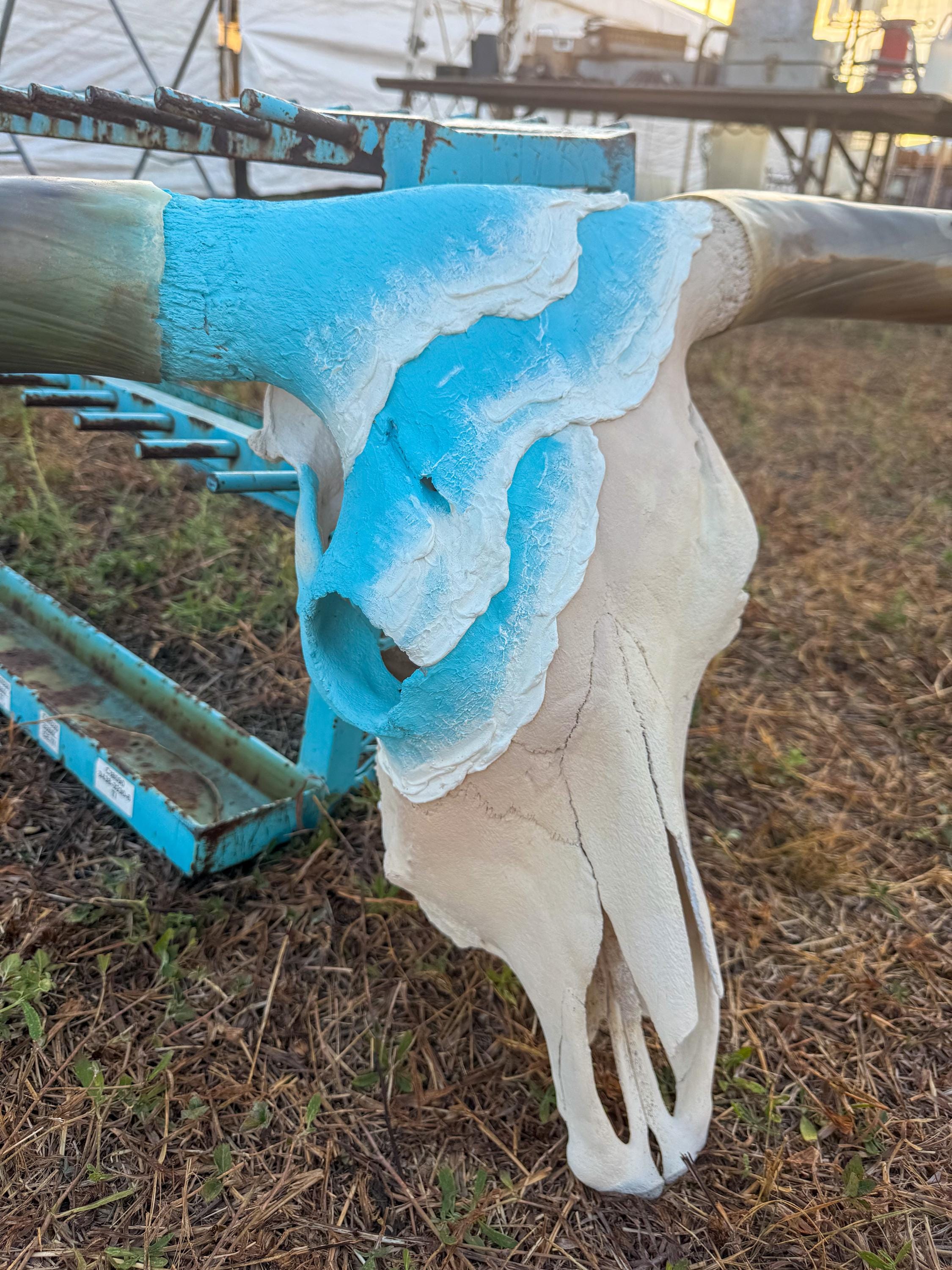 These are dairy cow skulls fitted with molded longhorn cores, designed to deceive buyers into thinking they are genuine longhorns. The attached ox horns often break over time. You can usually spot these fakes because the skull's structure appears unnatural or strange. A real longhorn skull has natural horn cores and doesn’t require any bondo or artificial work like dairy cow skulls who was not born with horns.