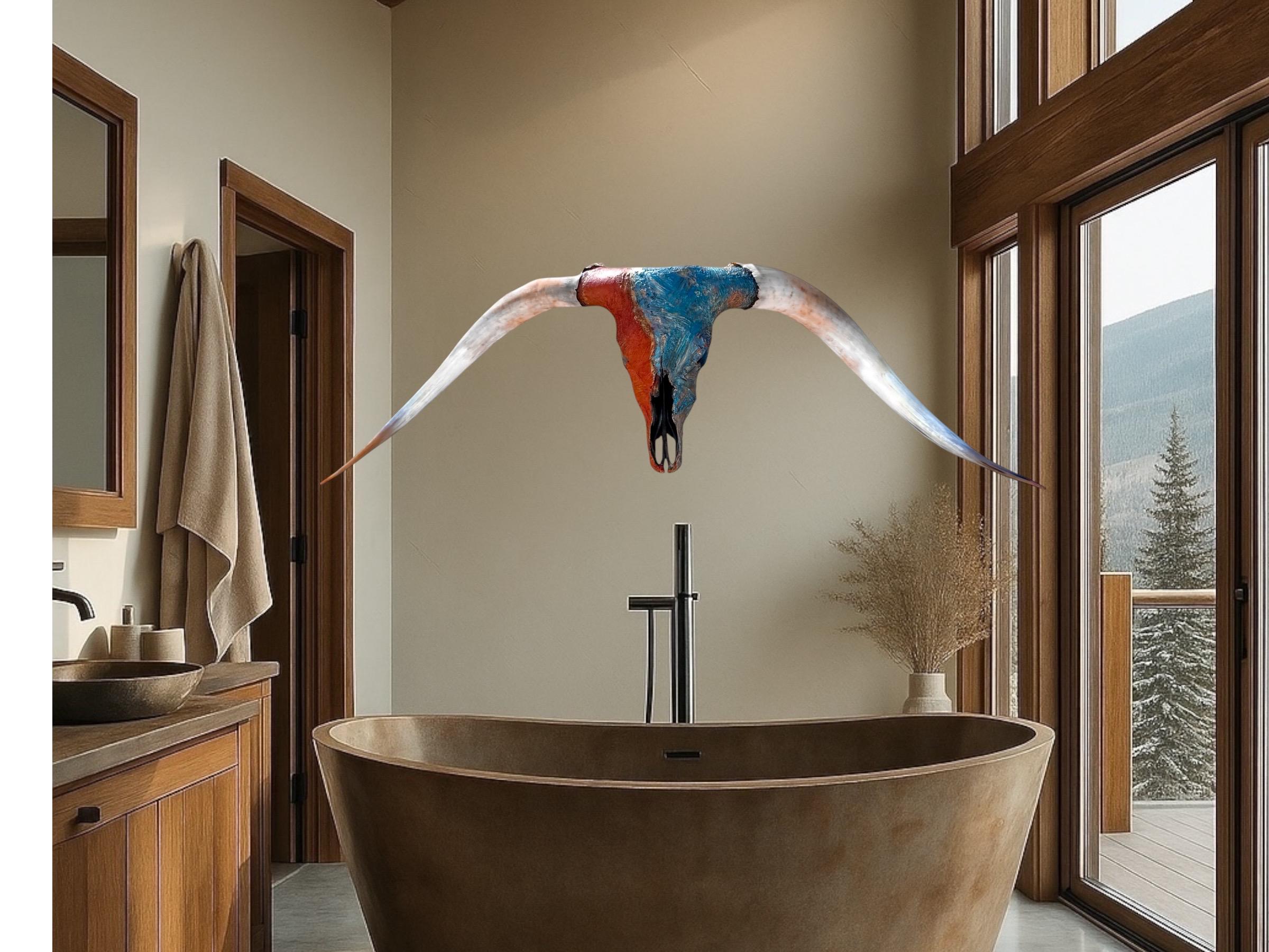 PLEASE NOTE: Our thoughtfully curated home decor backgrounds are designed to help you envision how a longhorn skull will elevate your space, offering inspiration for your walls. To make your decision effortless, we provide detailed videos and precise dimensions so you can see exactly how the piece will fit in your home. The total horn measurement is included so you can fully visualize the true size of a longhorn skull. Through our years of experience crafting longhorn skulls, we’ve found that some may appear shorter in width but look much larger due to the total curvature of the horns. This is why including the total horn measurement is so important.