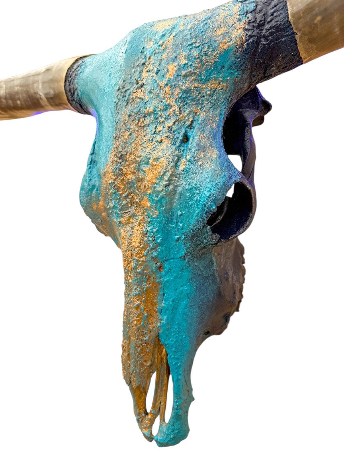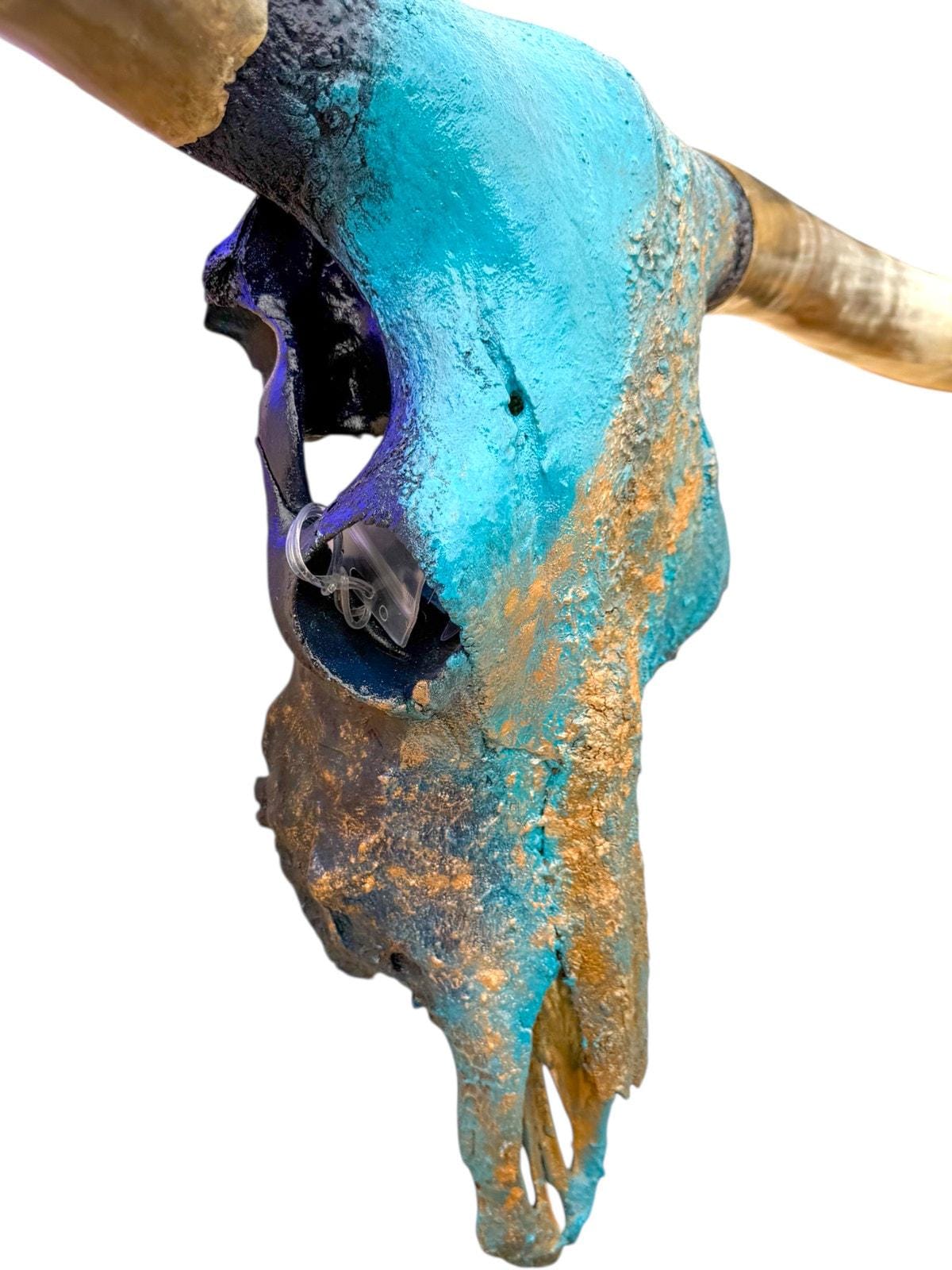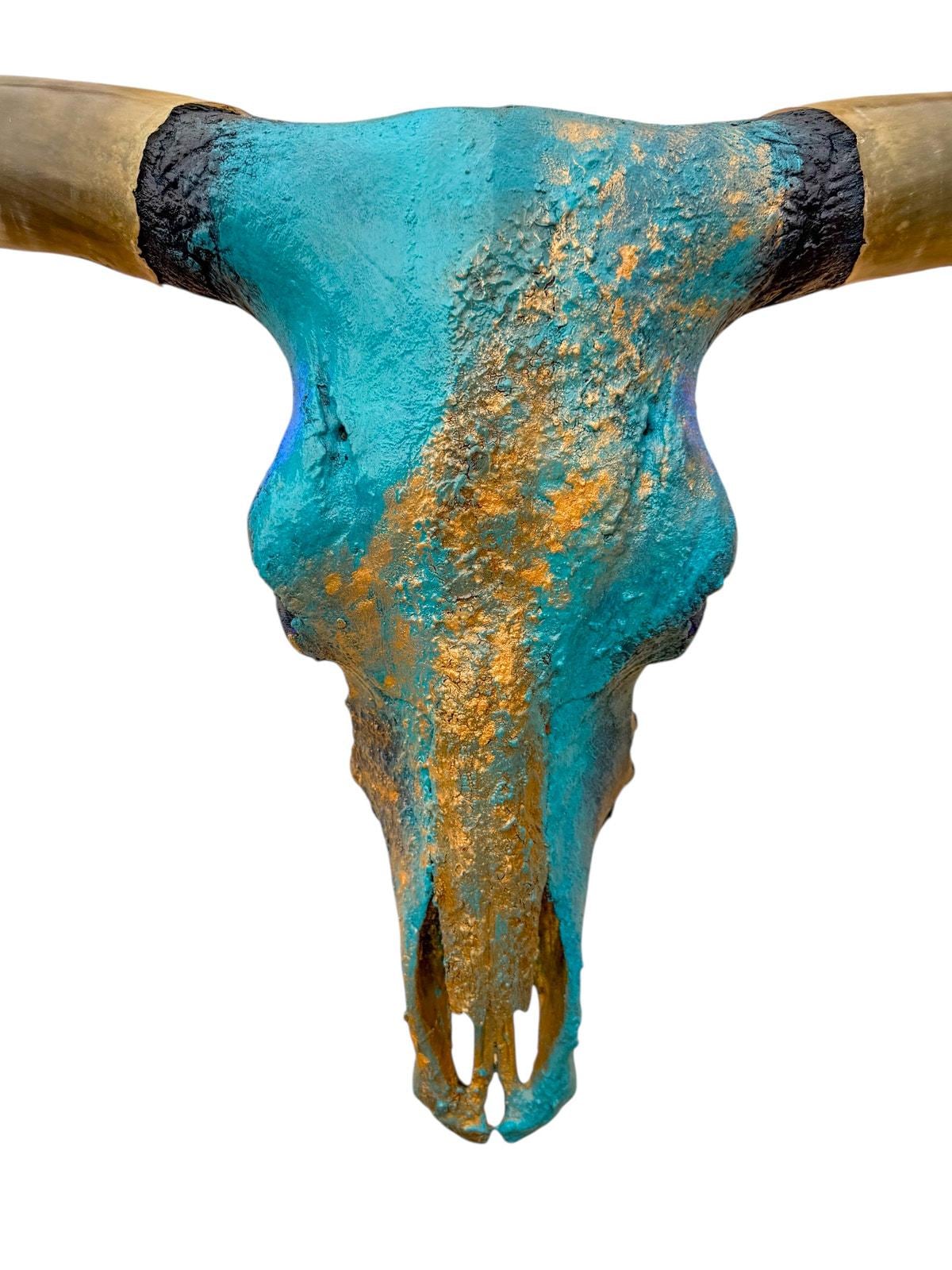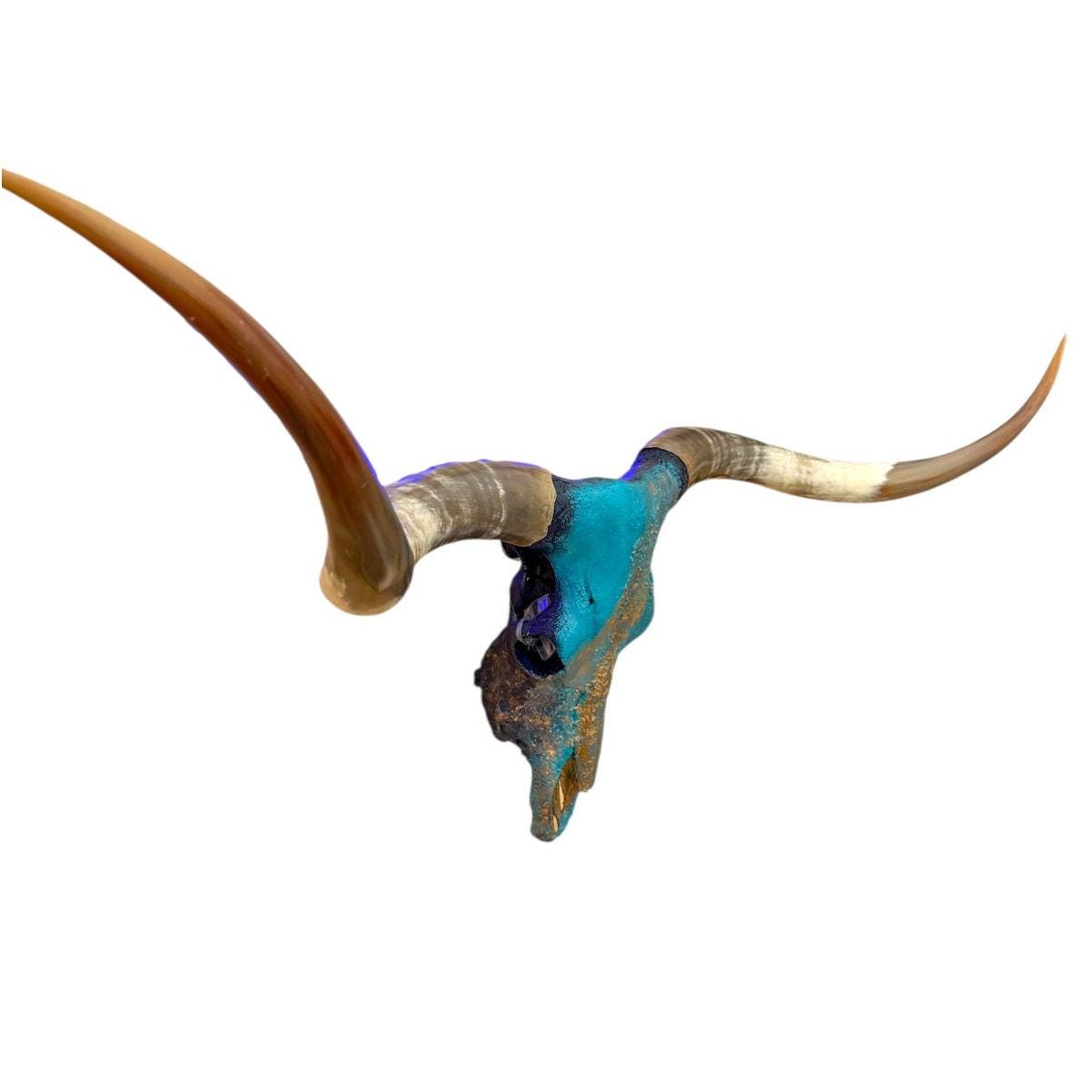 The longhorn behind Midnight Monarch was known for disrupting breeding programs across central Texas, vaulting fences, overtaking dominant sires, and shifting bloodlines. This skull is preserved, transformed, and elevated into fine art.