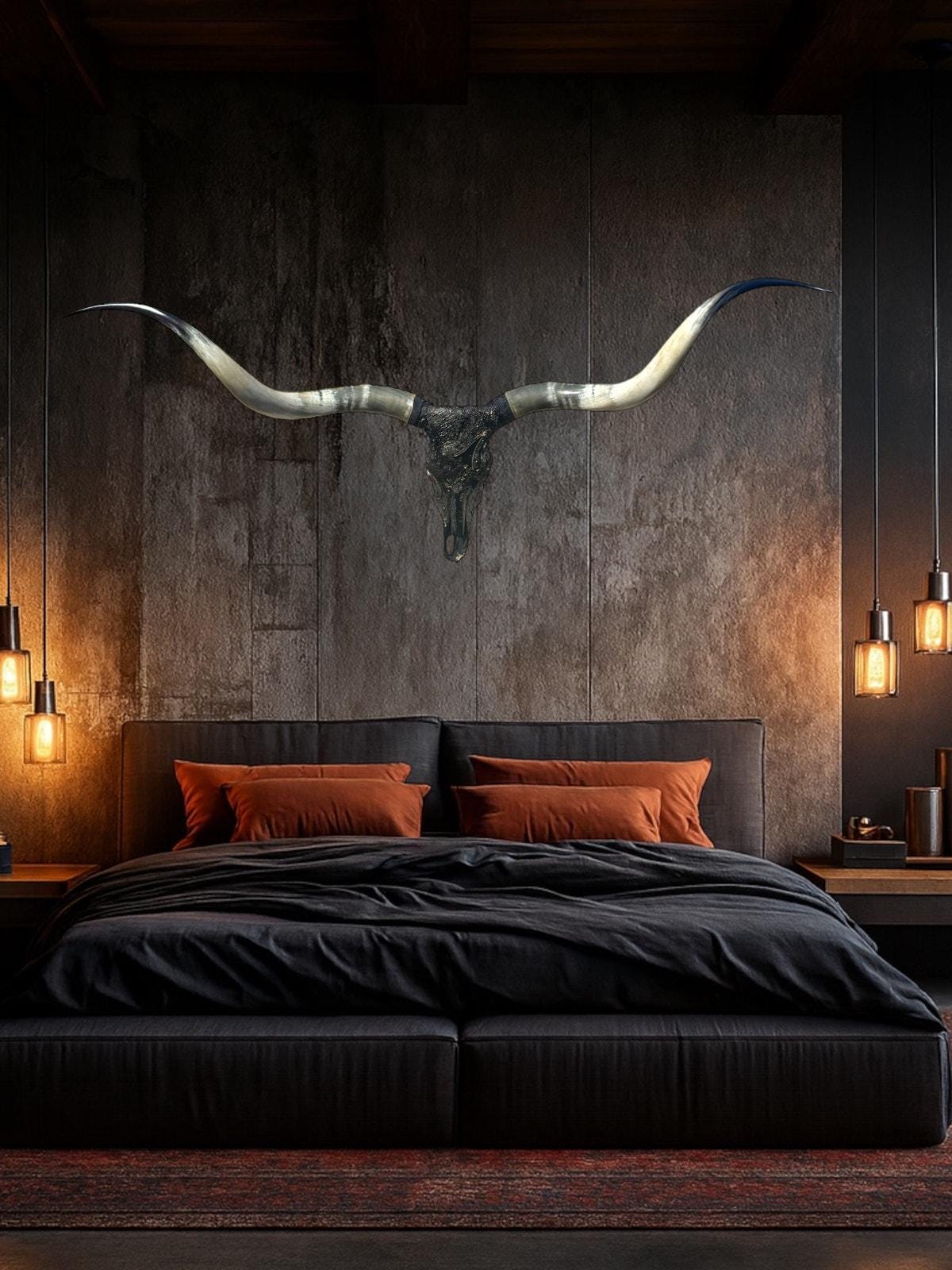 PLEASE NOTE: Our thoughtfully curated home decor backgrounds are designed to help you envision how a longhorn skull will elevate your space, offering inspiration for your walls. To make your decision effortless, we provide detailed videos and precise dimensions so you can see exactly how the piece will fit in your home. The total horn measurement is included so you can fully visualize the true size of a longhorn skull. Through our years of experience crafting longhorn skulls, we’ve found that some may appear shorter in width but look much larger due to the total curvature of the horns. This is why including the total horn measurement is so important.