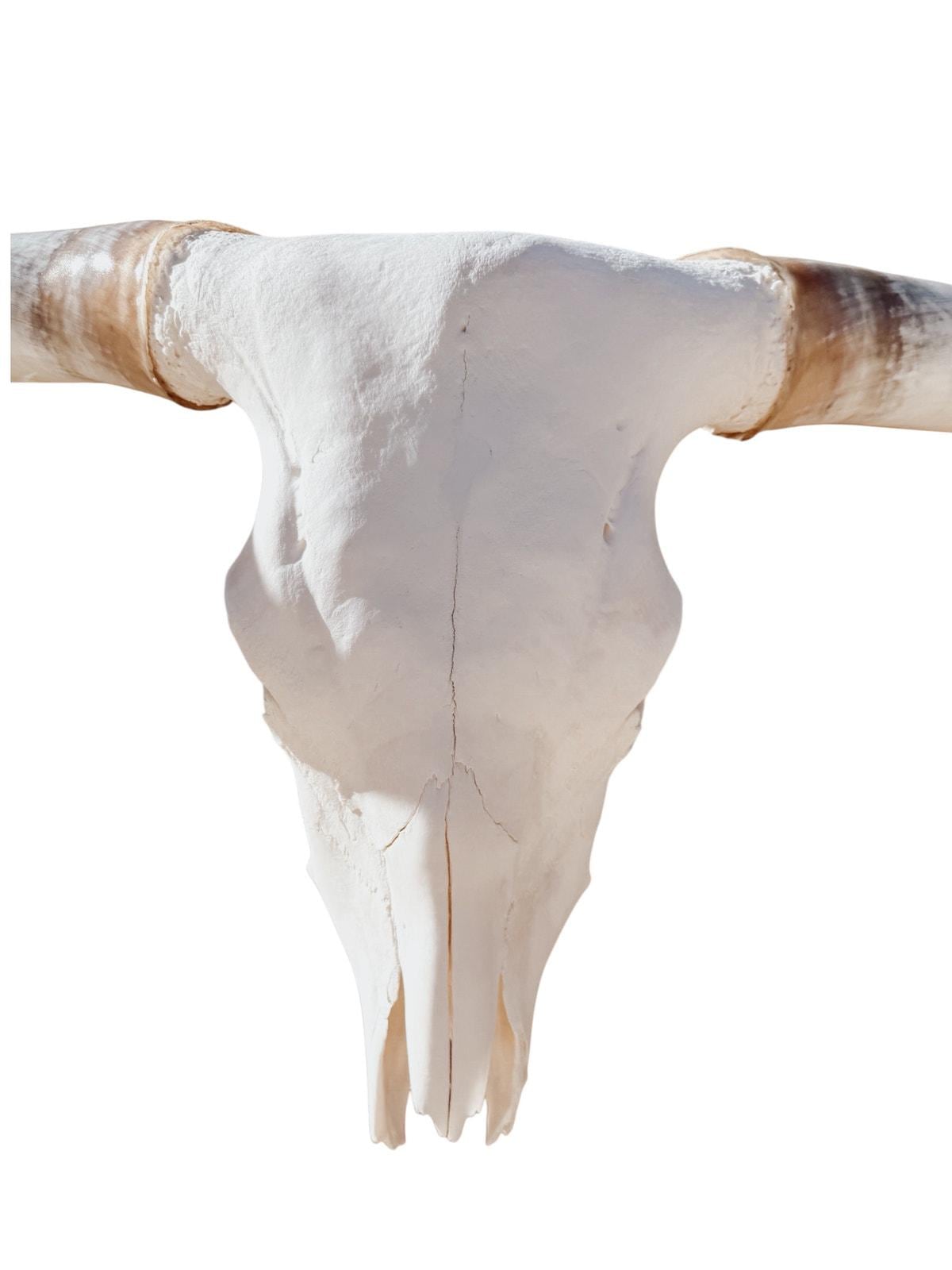 If you have any questions about determining the authenticity of the skull, please send us a message. We are happy to assist you in avoiding scams, even if you choose to buy from another seller. We are one of the few sellers offering genuine longhorn skulls. It's important to note that all horns and skulls may have minor blemishes from their natural state when the animal was alive.