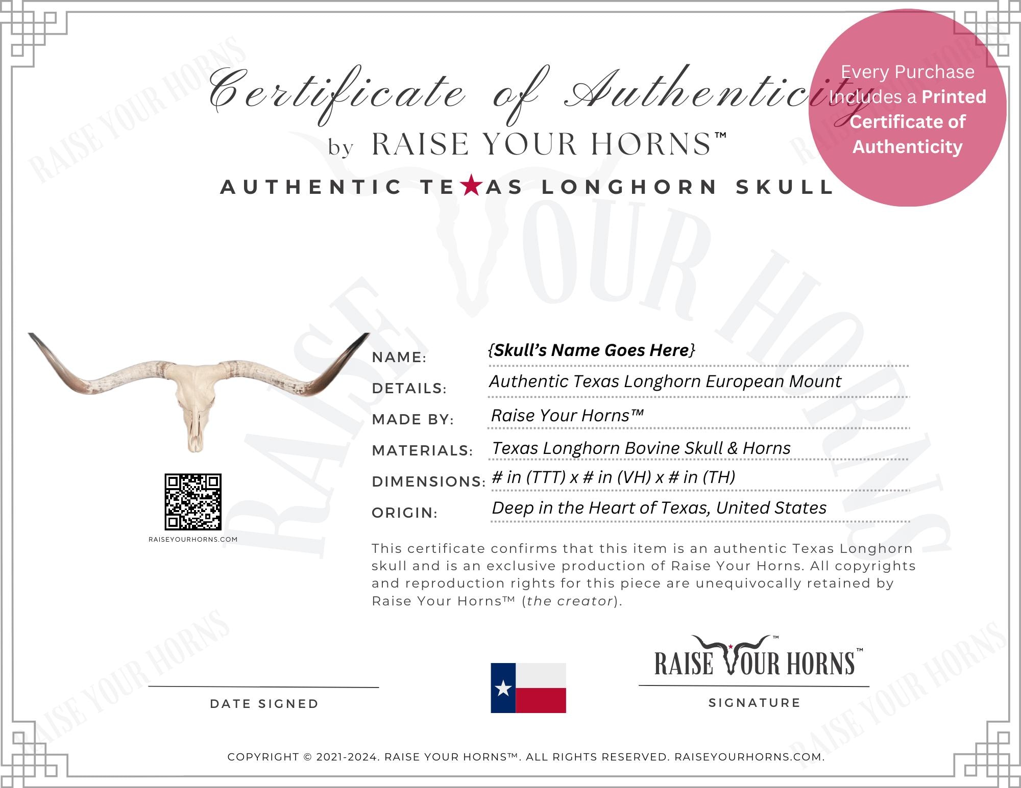 At Raise Your Horns, we prioritize quality and elegance, delivering timeless art that’s absolutely irresistible! Our loyal customers—our raving fans—love the unique statement pieces we offer, and we’re confident we can help you find the longhorn skull of your dreams. Just check our reviews to see for yourself! We take the time to post detailed measurements, just as we carefully craft each longhorn skull. Our focus is on uplifting your space with unmatched craftsmanship and style.