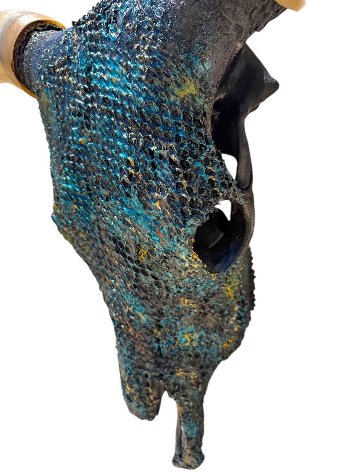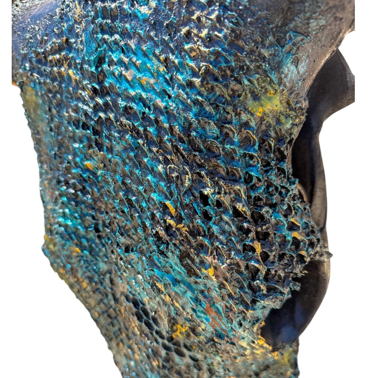 Every inch of this skull is movement—layered, chaotic, intentional. No clean lines. No perfection. Just depth, grit, and presence.